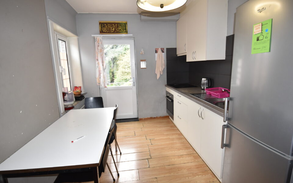 . ingerichte badkamer : dubbele wastafel, douche, toilet (mogelijkheid plaatsing wasmachine)