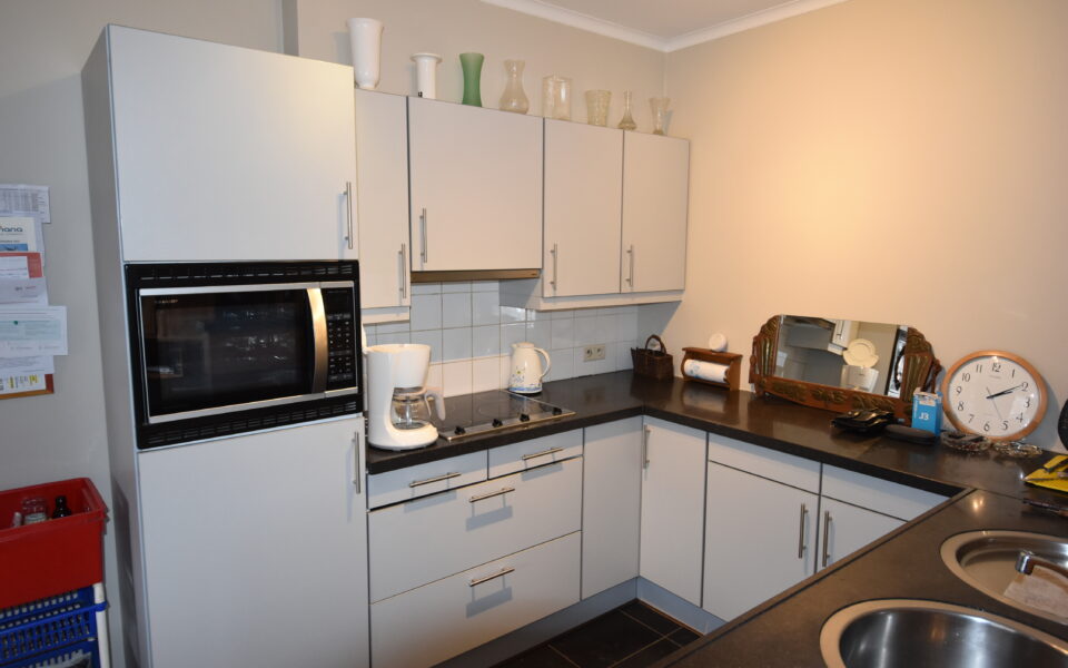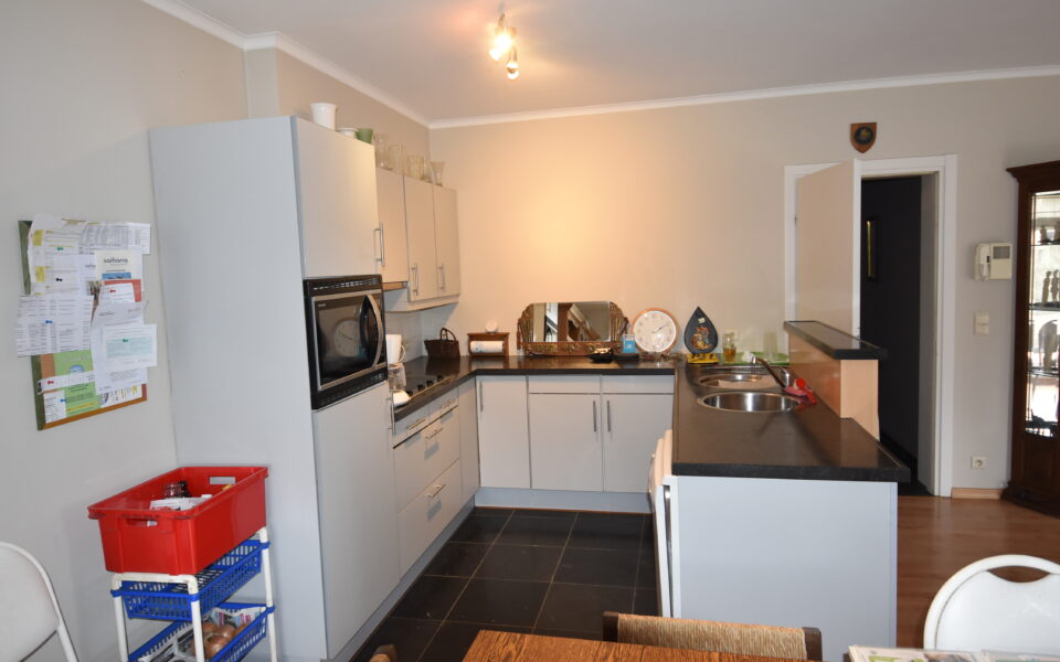 . Ingerichte open keuken met spoelbak, nieuwe vaatwasmachine, micro combi-oven, elektrische kookplaat,dampkap, koelkast met diepvriesvak.