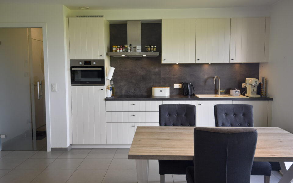 met een open ingerichte, landelijke keuken voorzien van alle toestellen.