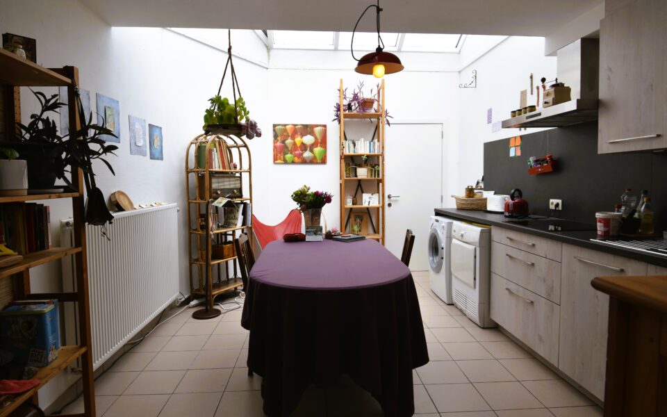 Bij binnenkomst stap je direct de sfeervolle woonkamer binnen, die naadloos overgaat in de aangename keuken. Deze keuken is uitgerust met moderne apparatuur, zoals een vaatwasmachine, een elektrische oven, een ijskast, een keramische kookplaat en een dampkap. De bijzondere koepel zorgt voor veel natuurlijk licht en frisse lucht. Aansluitend vind je een praktische berging en een achteruitgang naar de Parallelweg.