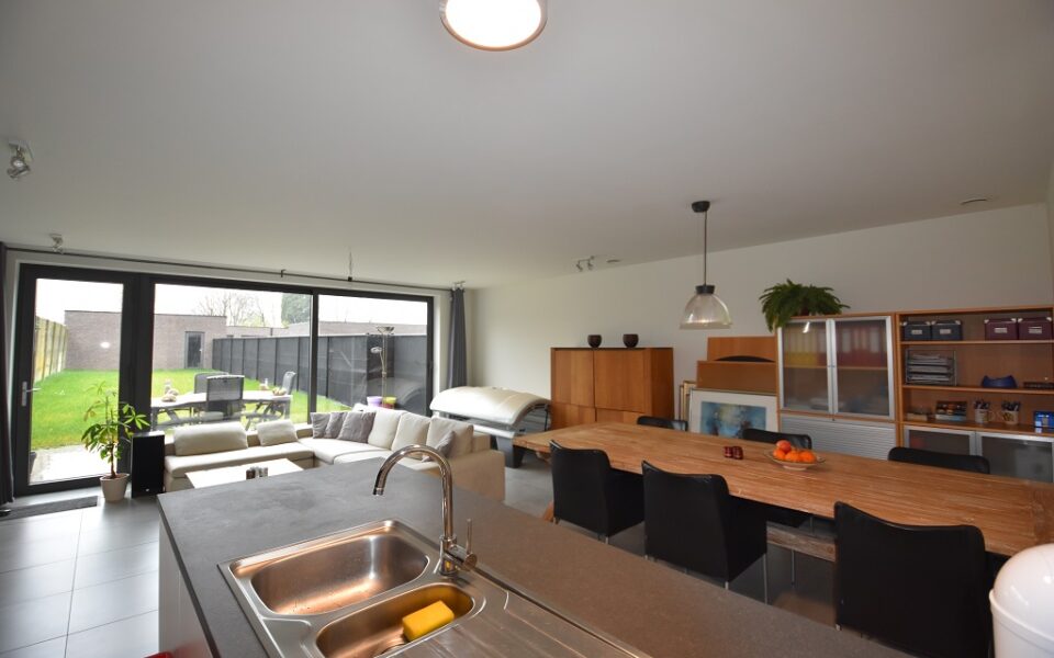 Via de ruime inkomhal met gastentoilet en handenwasser, kom je in de zeer lichtrijke, grote leefruimte