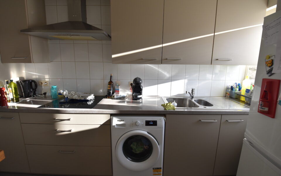 . ingerichte keuken met keramische kookplaat, telescopische dampkap, ijskast met diepvriesvak.