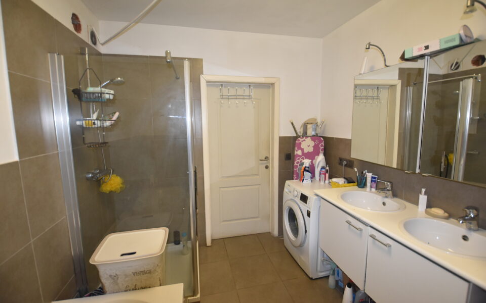 .Ingerichte badkamer: inloopdouche, ligbad en dubbele wastafel