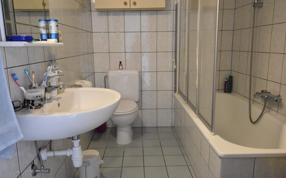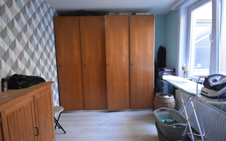 Je komt binnen via een ruime inkomhal met trap en handige inbouwkast, van waaruit je zicht hebt op de knusse binnentuin. De inpandige garage met sectionale poort biedt ruimte voor je wagen én aansluitingen voor wasmachine en droogkast. De badkamer op het gelijkvloers is uitgerust met een ligbad/douchecombinatie, wastafel en toilet. Verder vind je hier twee comfortabele slaapkamers. Parkeren kan op de oprit, waar plaats is voor twee wagens.