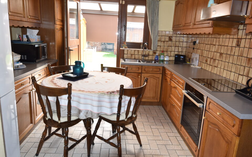 Ingerichte keuken (3,80 x 3,10) met keramische kookplaat (Neff), dampkap (Miele), elektrische oven (Neff), losstaande ijskast en dubbele spoelbak (2020)