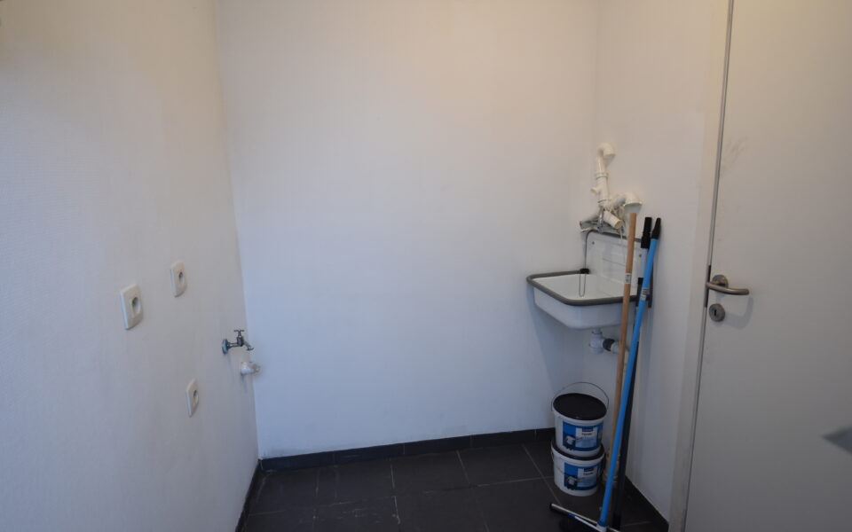 – wasplaats met uitgietbak, aansluiting voor wasmachine en droogkast