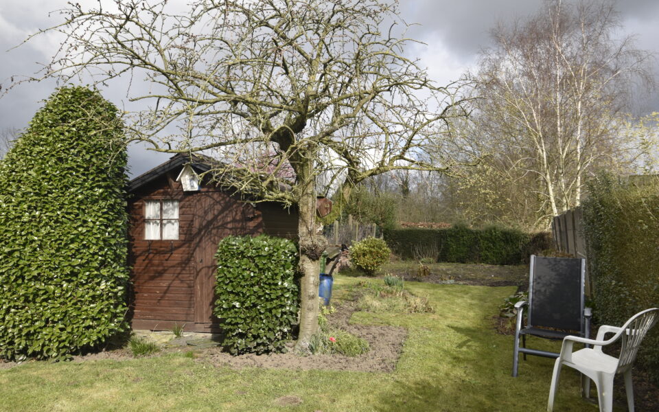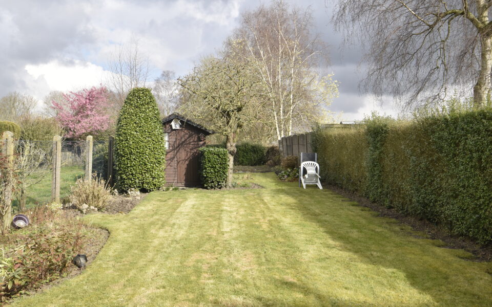 Bij binnenkomst via de inkomhal met vestiairekast en gastentoilet kom je in de ruime en lichtrijke leefruimte, die bestaat uit een zithoek en eetruimte. De houtcassette zorgt voor extra gezelligheid, terwijl je vanuit deze ruimte een prachtig uitzicht hebt op de tuin. Aansluitend bevindt zich de volledig uitgeruste keuken, de praktische wasplaats en de inpandige garage . Op de gelijkvloerse verdieping vind je ook een ingerichte badkamer.