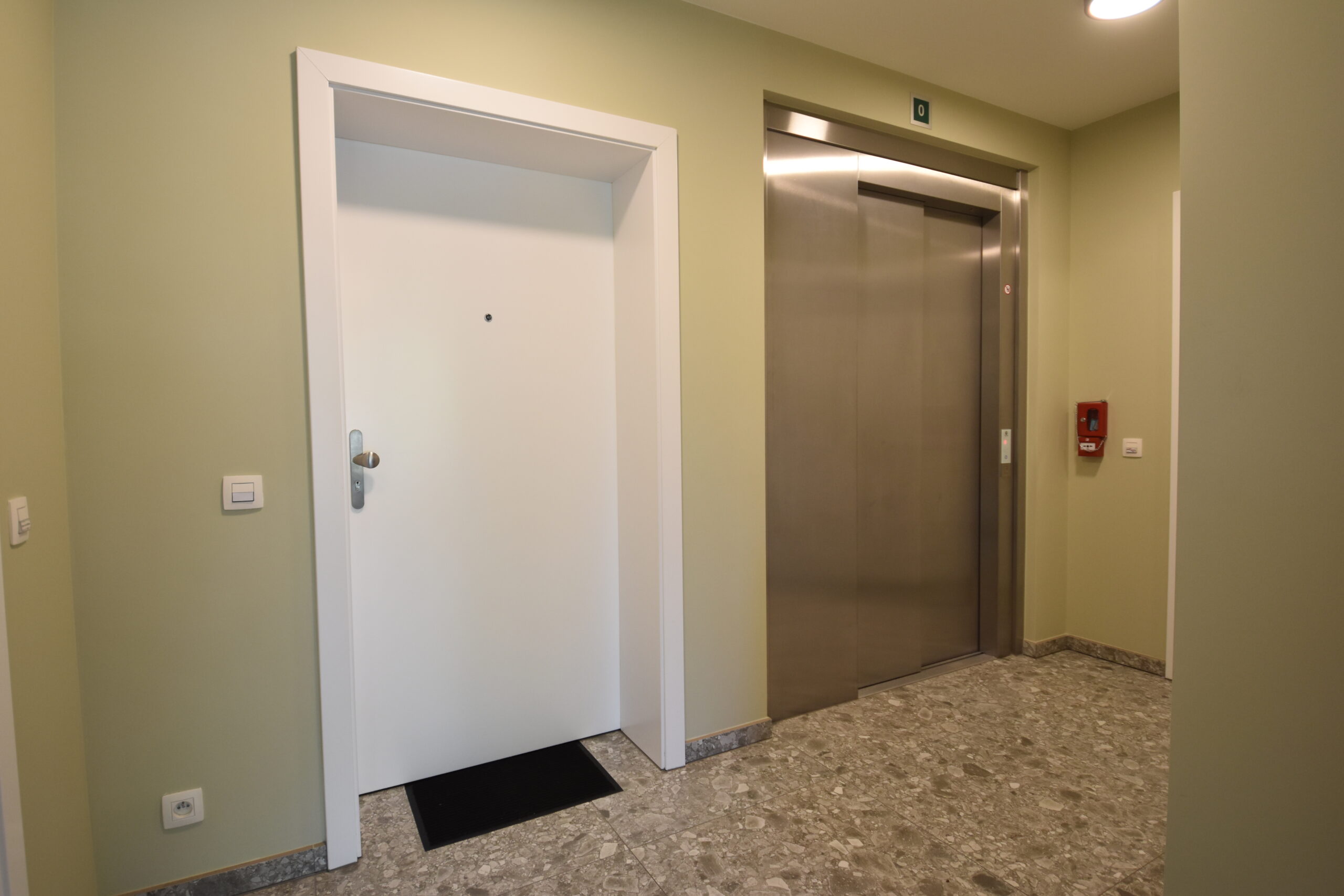 Het appartement bevindt zich op de eerste verdieping van een kleinschalig gebouw met lift. Parkeren kan veilig in de afgesloten garage, bereikbaar via een automatische poort.
