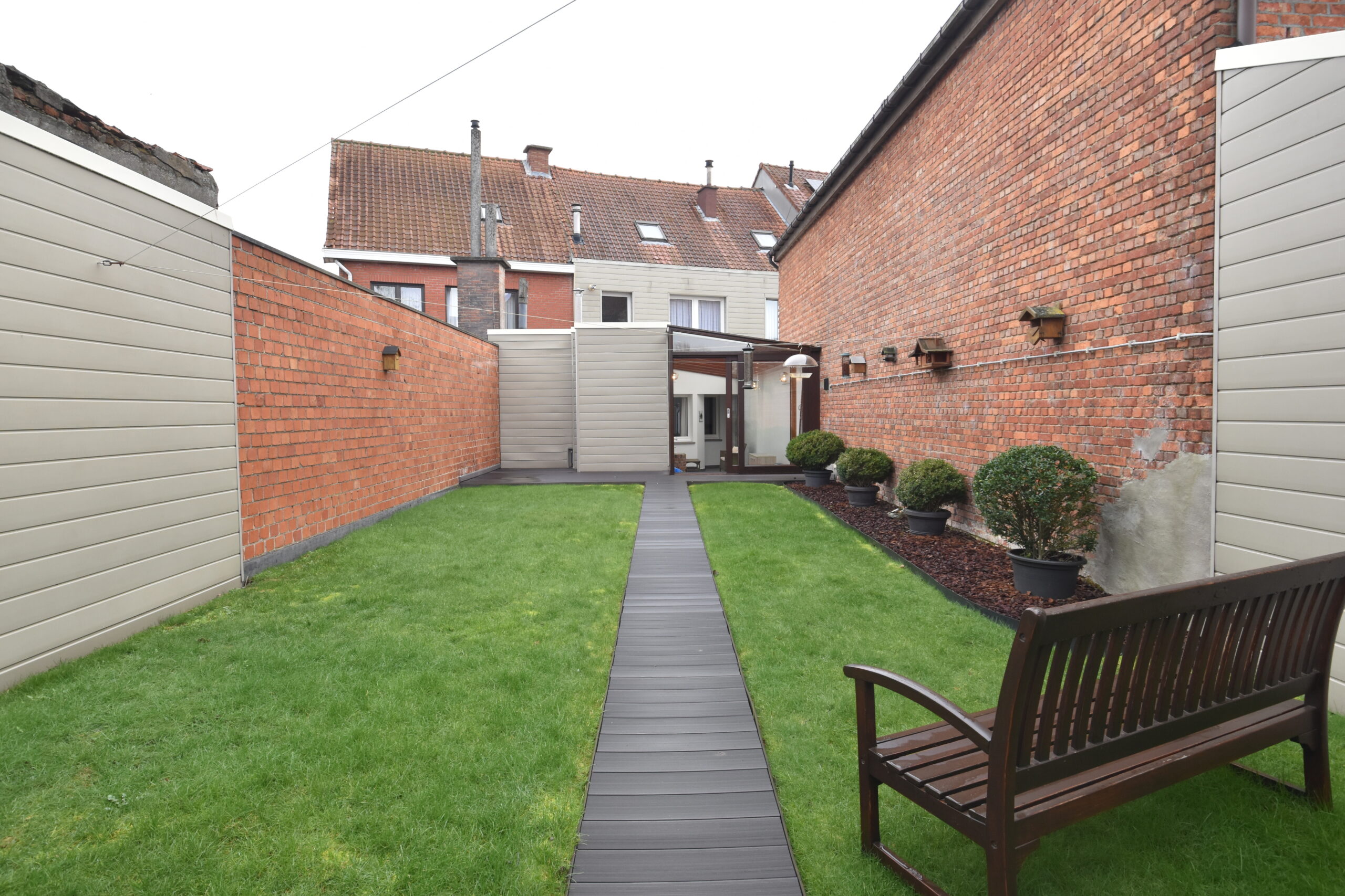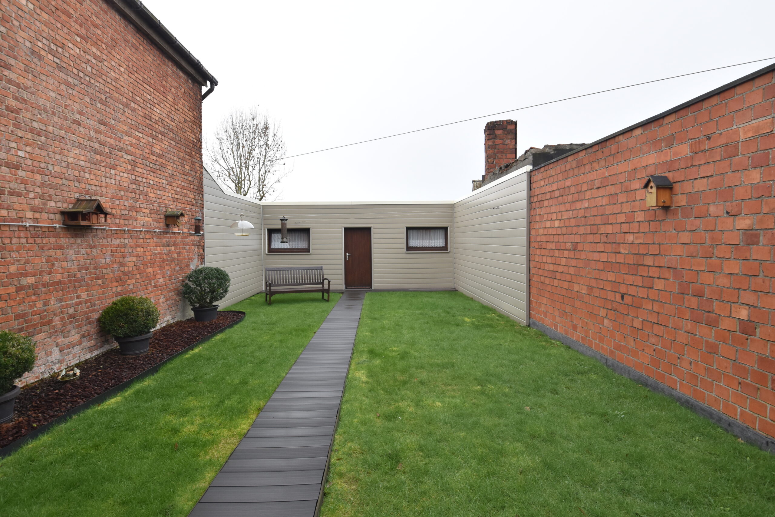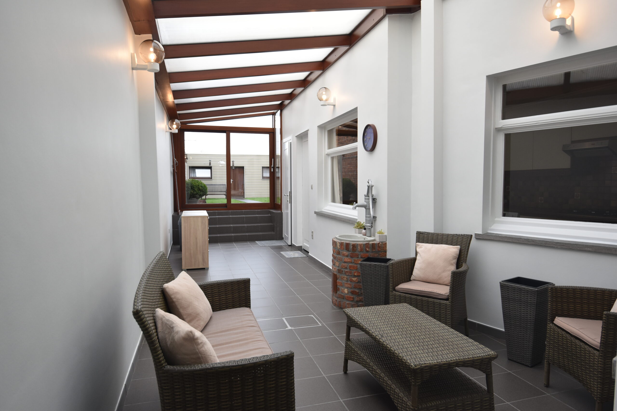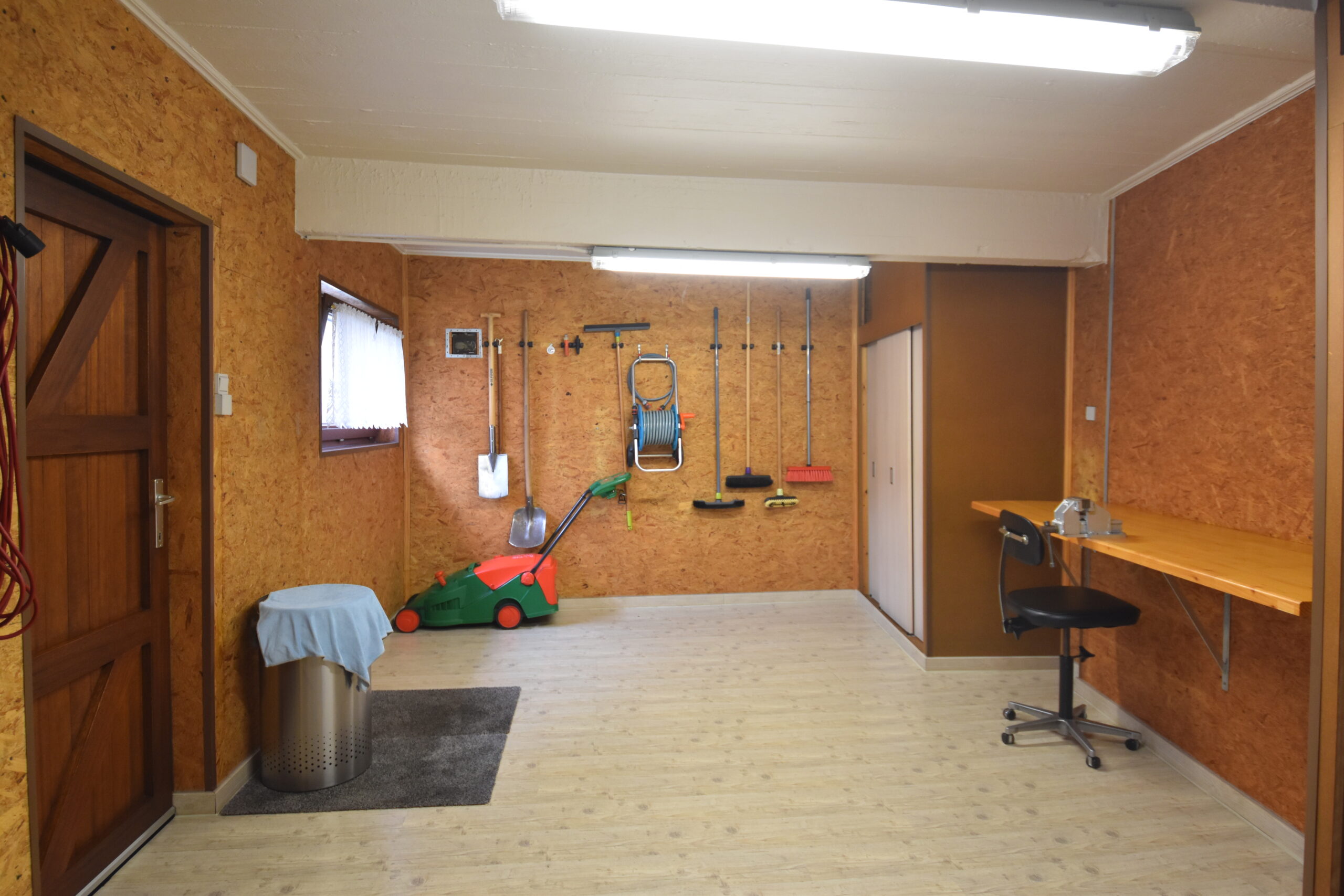 Aansluitend vind je een lichtrijke veranda met zicht op de tuin en toegang tot de volledig vernieuwde tuinberging. Extra praktisch zijn de garage en de bovenliggende hobbyruimte – ideaal voor wie graag klust, een atelier wil inrichten of gewoon extra bergruimte zoekt.