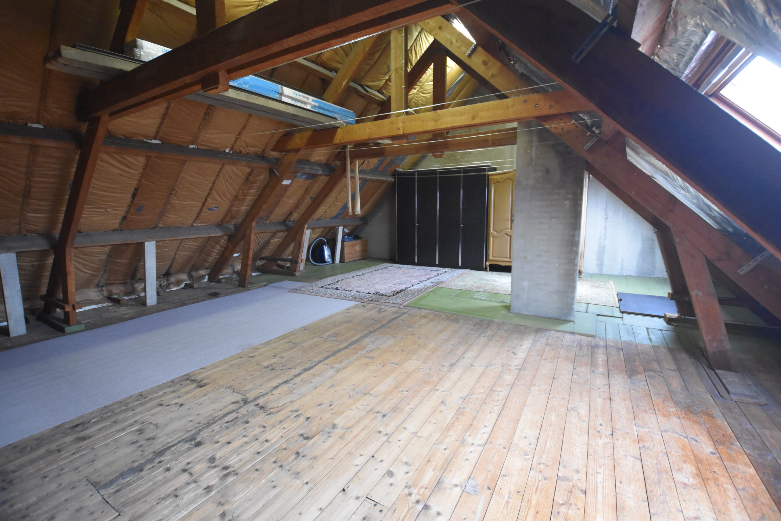 De vaste trap naar de ruime zolderverdieping is een absolute troef. Perfect als extra bergruimte of met potentieel om bijkomende slaapkamers te creëren.
