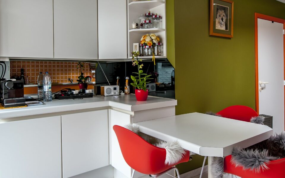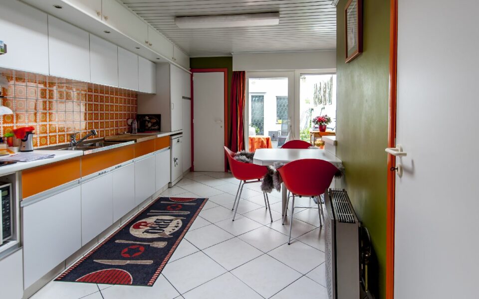 – Open geïnstalleerde keuken met bergruimte, tegelvloer