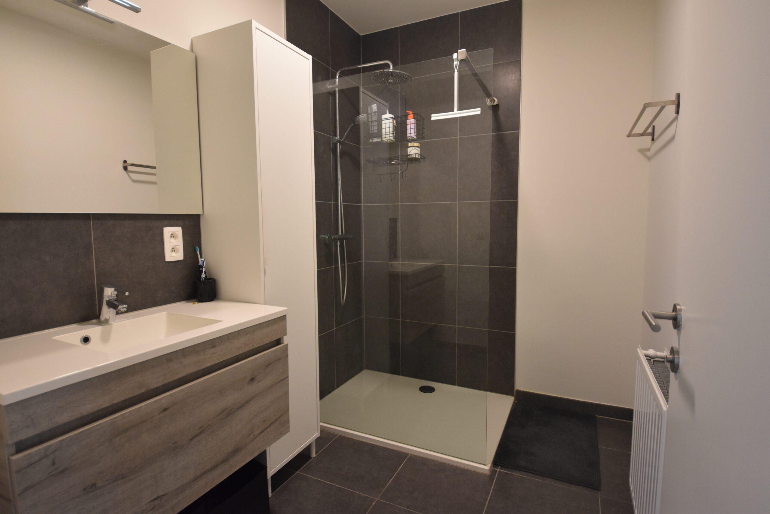 De moderne badkamer beschikt over een comfortabele inloopdouche en een lavabo. Verder zijn er twee volwaardige slaapkamers, perfect voor een koppel, klein gezin of thuiswerkplek.