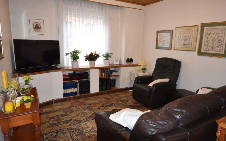 . Lichtrijke leefruimte met gaskachel, keramische tegel.