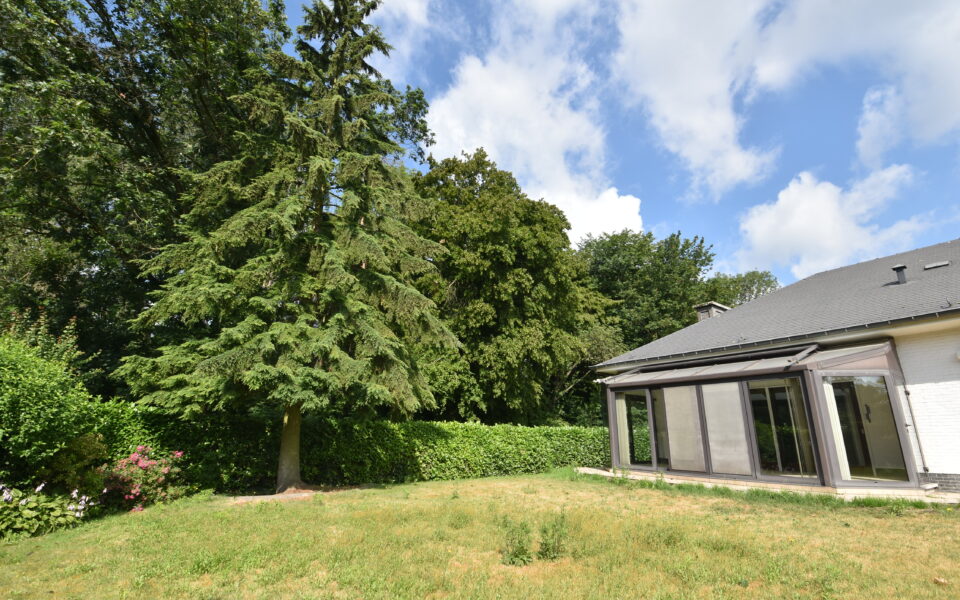 Je komt binnen via een ruime inkomhal met ingemaakte kasten en een gastentoilet met handenwasser. De lichtrijke leefruimte met veranda biedt een prachtig zicht én directe toegang tot de tuin — ideaal om te genieten van de rust.