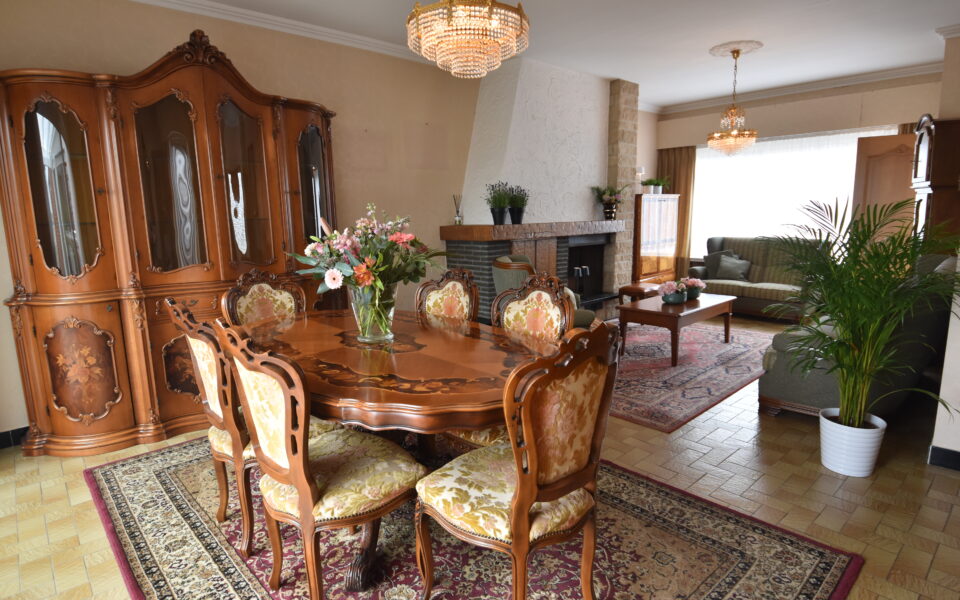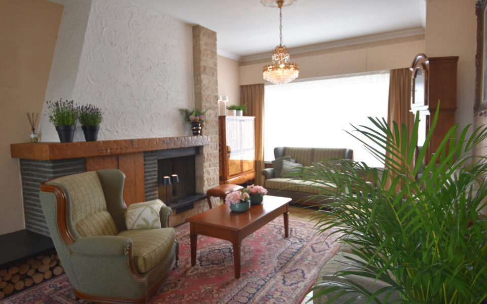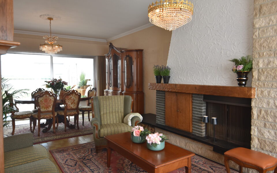 Stap binnen via de verzorgde inkomhal, waar een elegante marmeren trap meteen charme uitstraalt. De ruime leefruimte met zithoek en eetkamer nodigt uit tot gezellig samenzijn – zeker met de knusse open haard als sfeermaker. Aansluitend vind je een ruime, volledig ingerichte keuken, een gastentoilet en een praktische wasplaats. Zowel de veranda als het terras zijn perfecte plekken om te ontspannen en te genieten van rust en natuur.