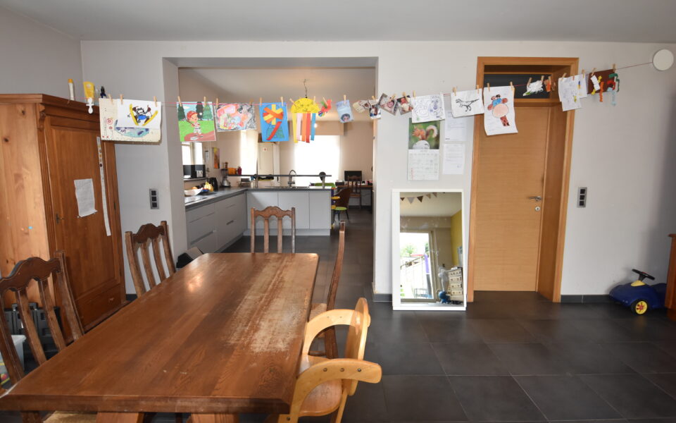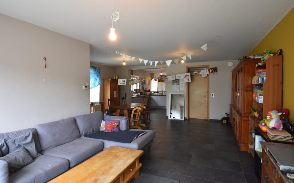 en eethoek. Momenteel is er een speelhoek voor de kinderen, dit kan je ook inrichten als bureel.