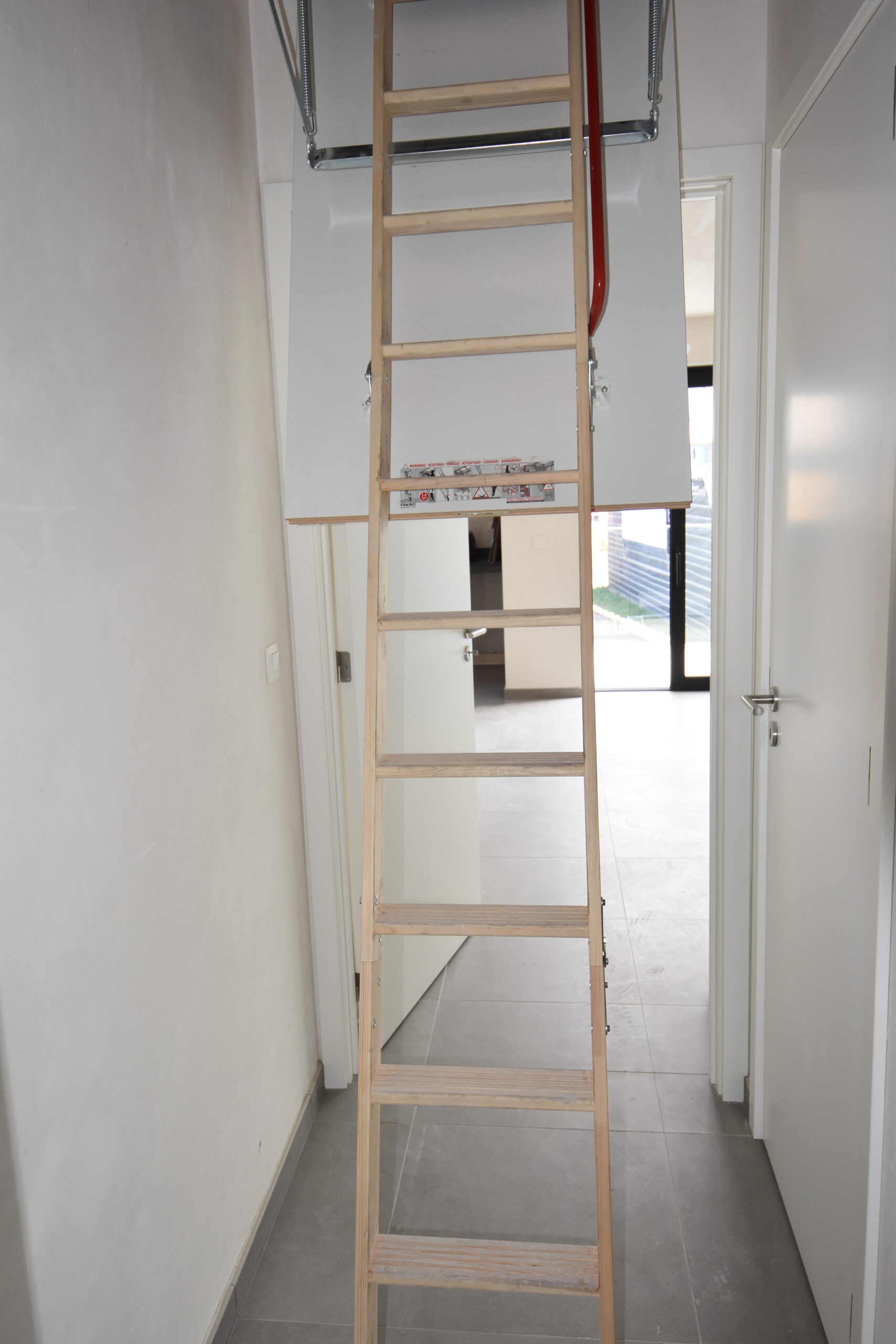 Extra opbergruimte vind je op de ruime bergzolder, die bereikbaar is via een uittrektrap. Tot slot beschikt het appartement over een privatieve garage met automatische sectionale poort, voorzien van een elektriciteitsaansluiting voor een laadpaal, en een aparte afgesloten berging.