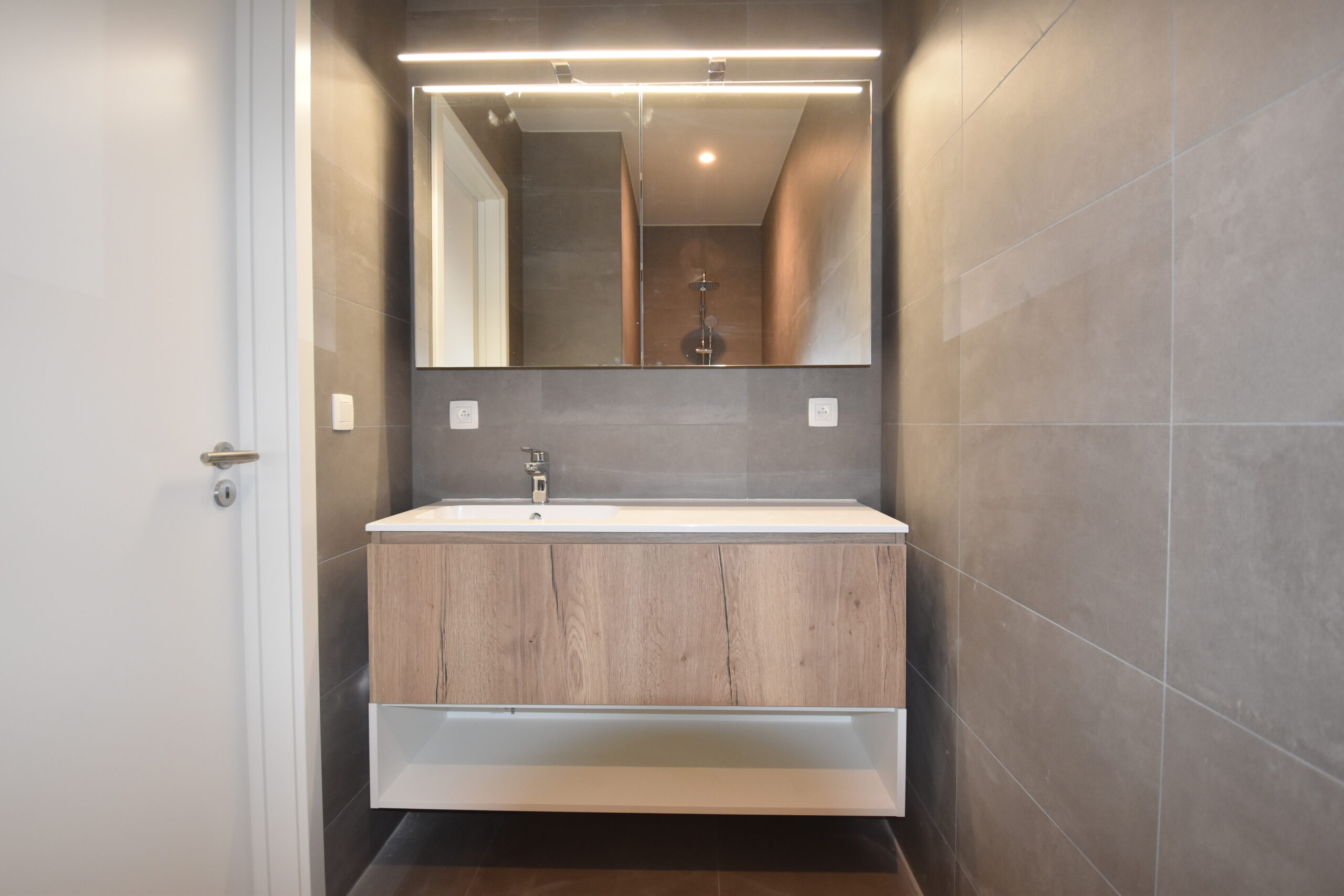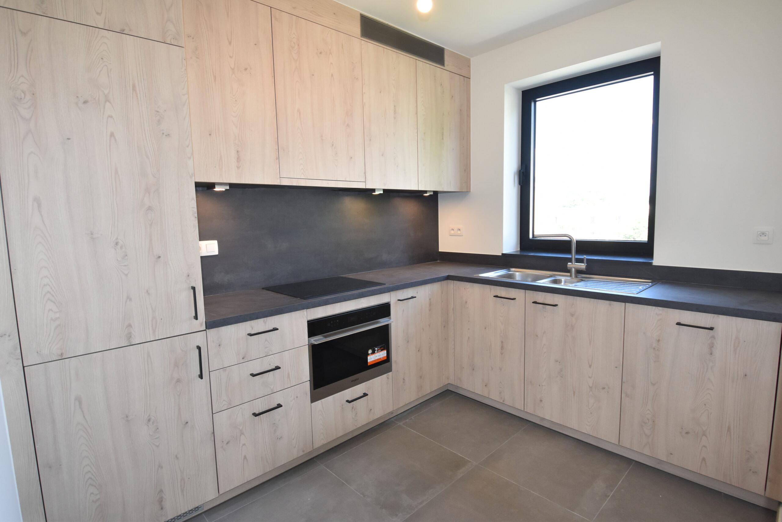 Via de inkomhal betreed je dit aangename appartement. De zeer lichtrijke leefruimte sluit naadloos aan op het mooie terras van 8 m², waar het heerlijk vertoeven is. Aansluitend bevindt zich de open, volledig ingerichte keuken, uitgerust met een vaatwasmachine, koelkast, diepvries, keramische kookplaat, dampkap, dubbele spoelbak en een combi-oven.