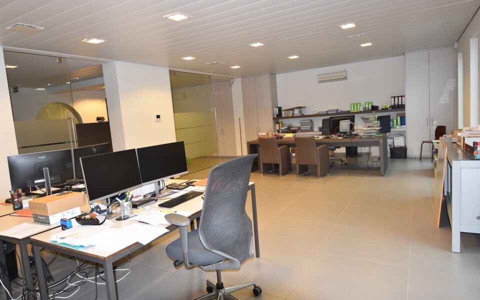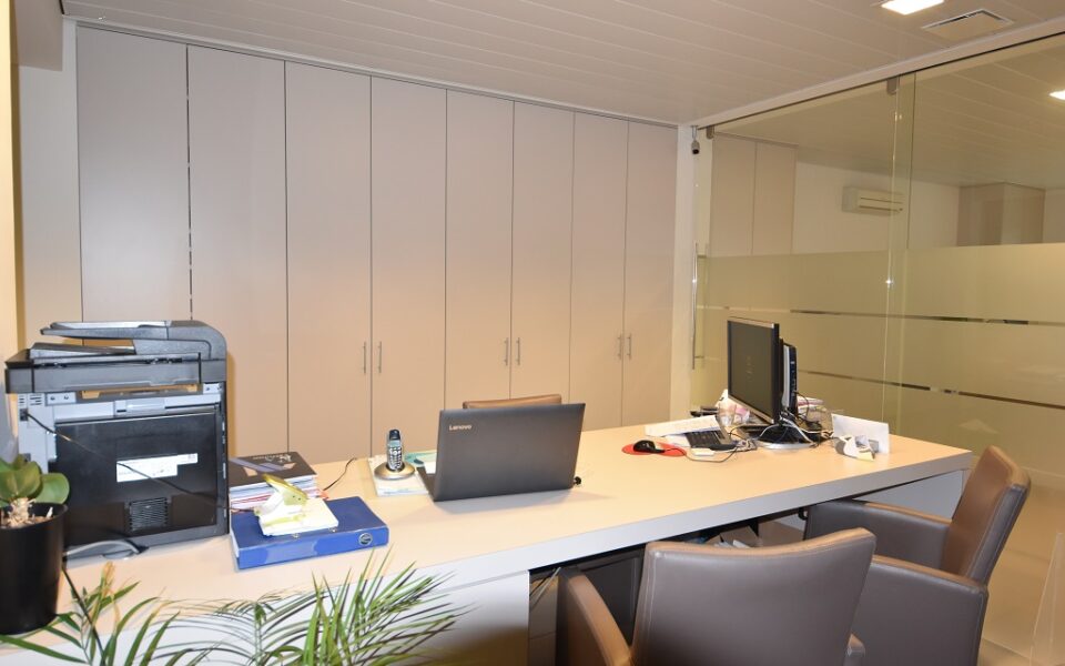 polyvalente kantoor/vergaderruimte met ingemaakte kastenwant en veel lichtinval door glazen wanden