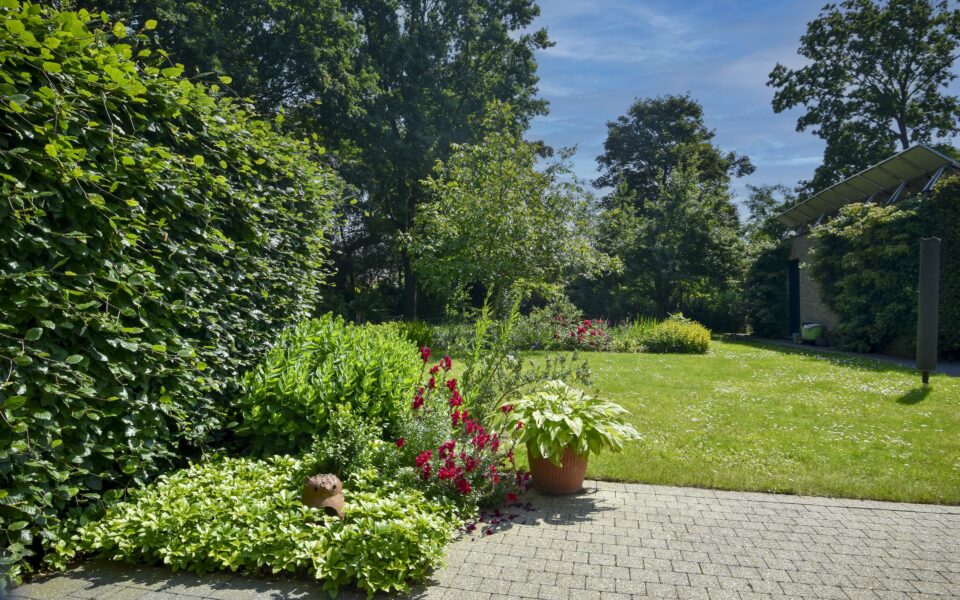 Genieten van een zonnige dag kan je op het terras en de aangelegde oost gerichte tuin met een mooi grasperk.