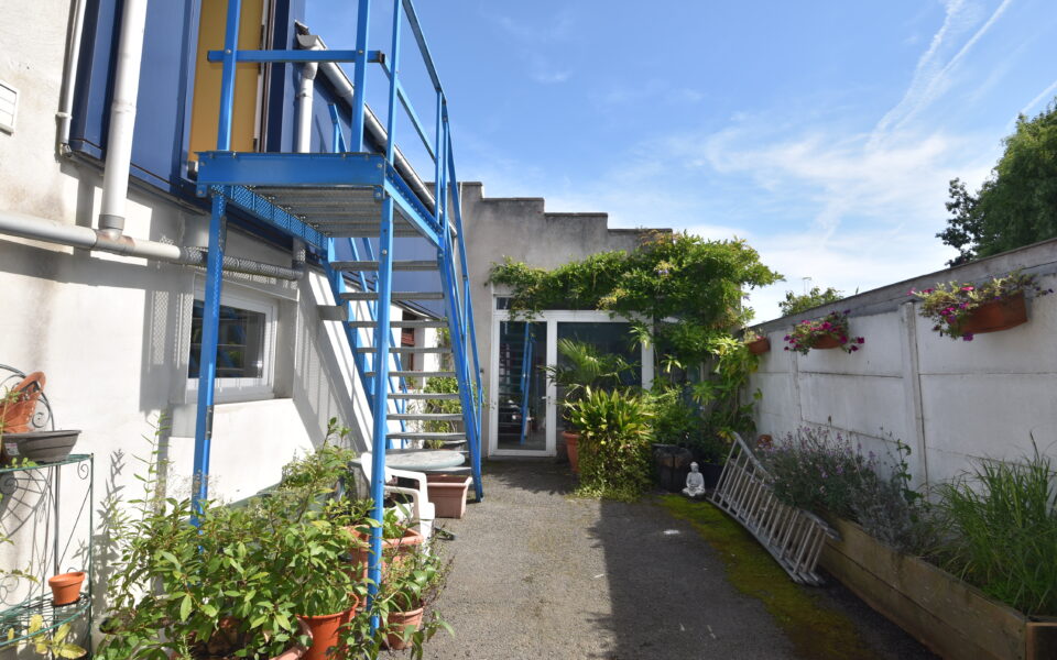 Langs daar kom je op de binnenkoer, waar een trap je naar een gezellige praktijkruimte brengt die volledig vernieuwd is in 2018.